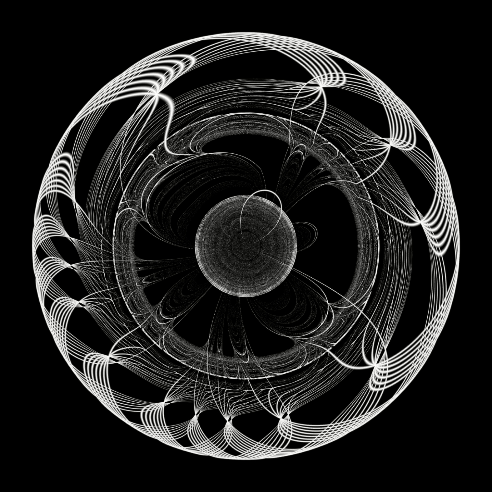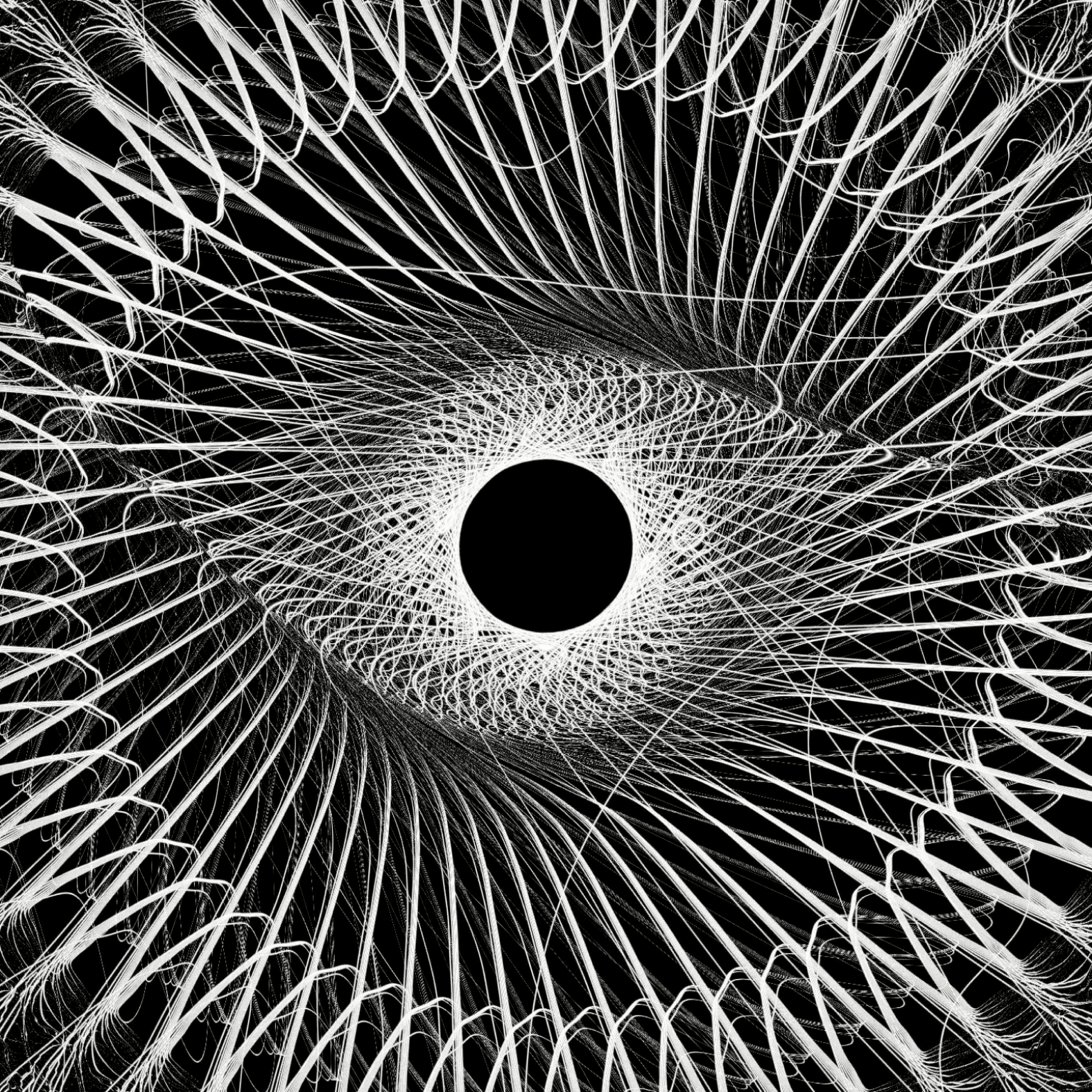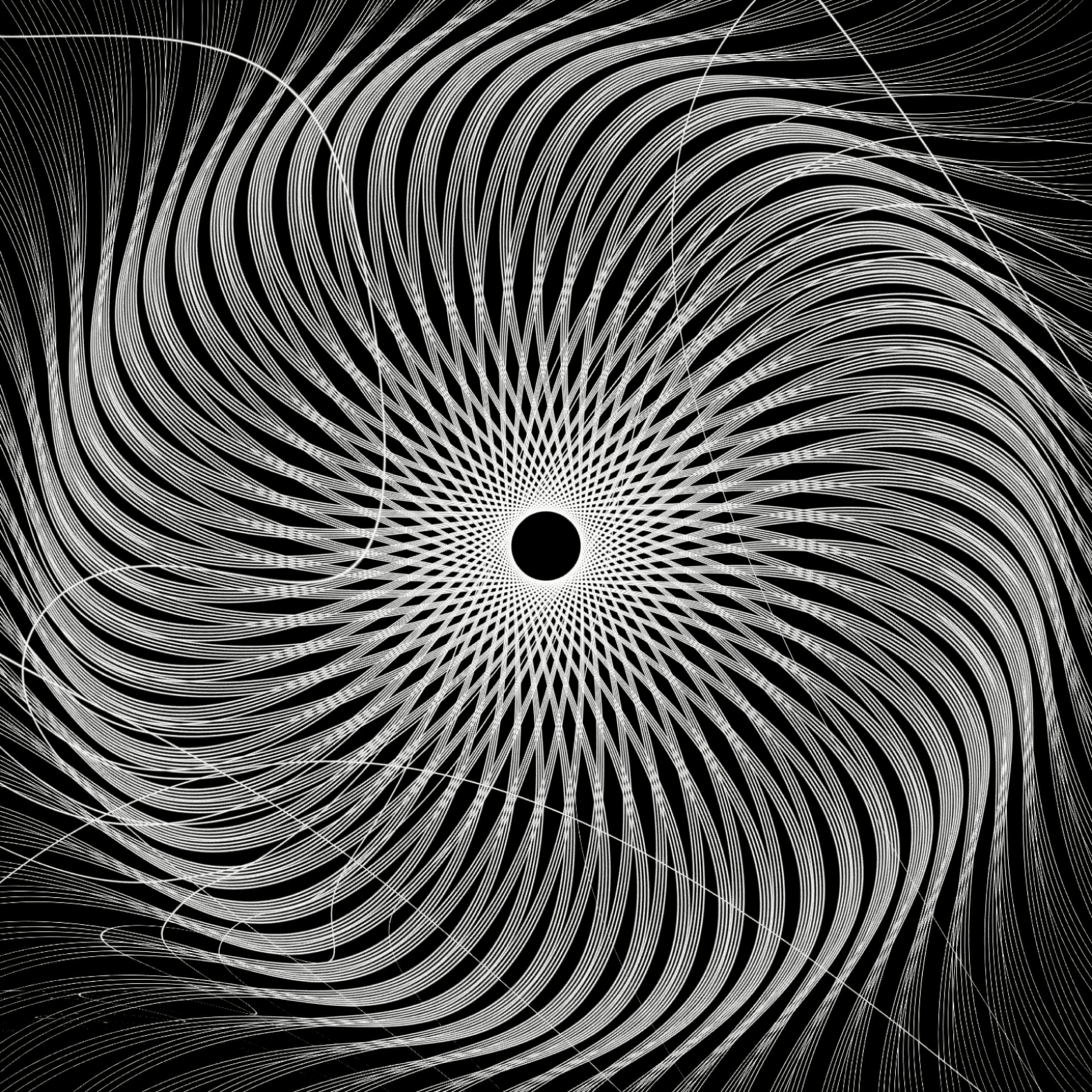hypnotrohoid is inspired by the patterns of the children's toy spirograph. Such patterns are mathematically described by the hypotrochoid formula. When Sasha was writing the code, he made a mistake and a piece of life and chaos appeared in the strict algorithm. Due to the inaccuracy, the patterns became particularly engaging and immersive - this is how the name hypnotrohoid appeared.